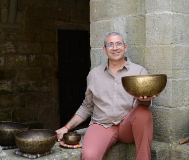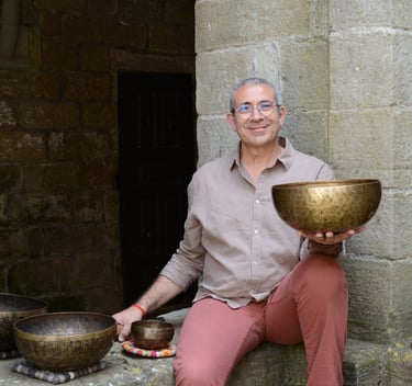 Après des études de psychomotricité et de psychologie, j'ai décidé d'unir ma passion pour la musique et les sons en particulier à mon intérêt pour la relation d'aide et l'accompagnement des personnes. Après un premier passage dans une école de musicothérapie, je me suis orienté vers la sonothérapie et formé à cette pratique auprès du Centre Medson (Canada) et au Kathmandu Healing Center(Népal).