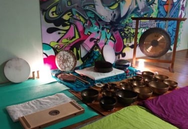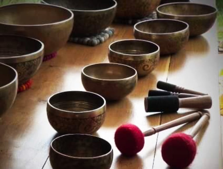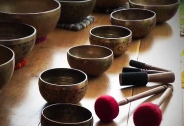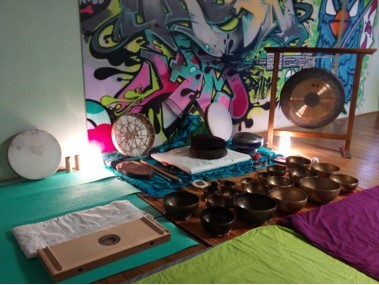 J'utilise principalement pour amener les personnes à un état de détente profonde, les bols chantants tibétains et les diapasons dits thérapeutiques. Les vibrations douces des bols se propagent à l’intérieur de notre organisme via les tissus denses et les molécules d’eau. L’effet ? Comme notre corps est en grande partie composé d’eau, un véritable « massage cellulaire » s’effectue jusqu’aux articulations et au système nerveux, en passant par les organes, les os, les muscles. Le massage sonore aux bols tibétains conduit à une relaxation profonde.